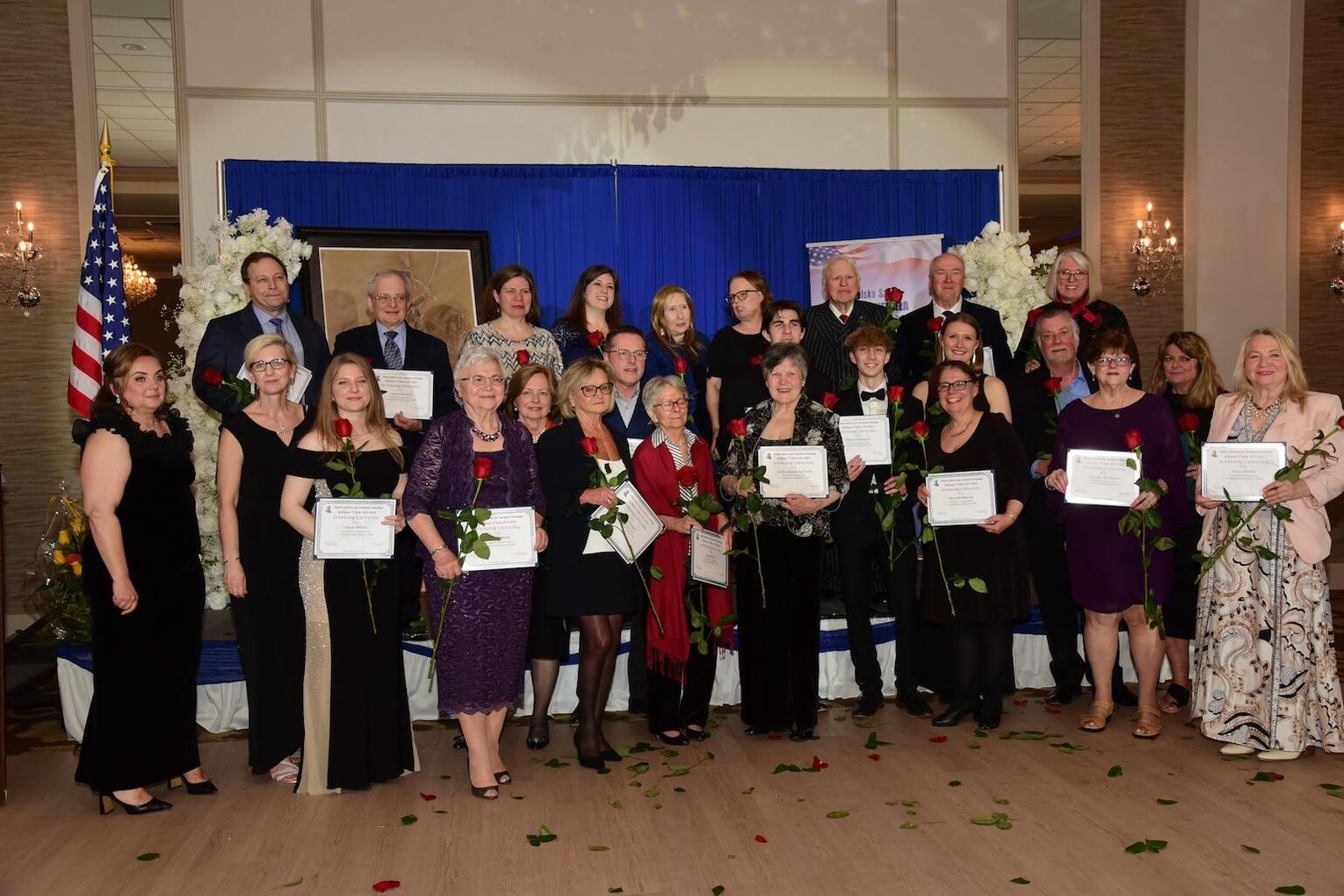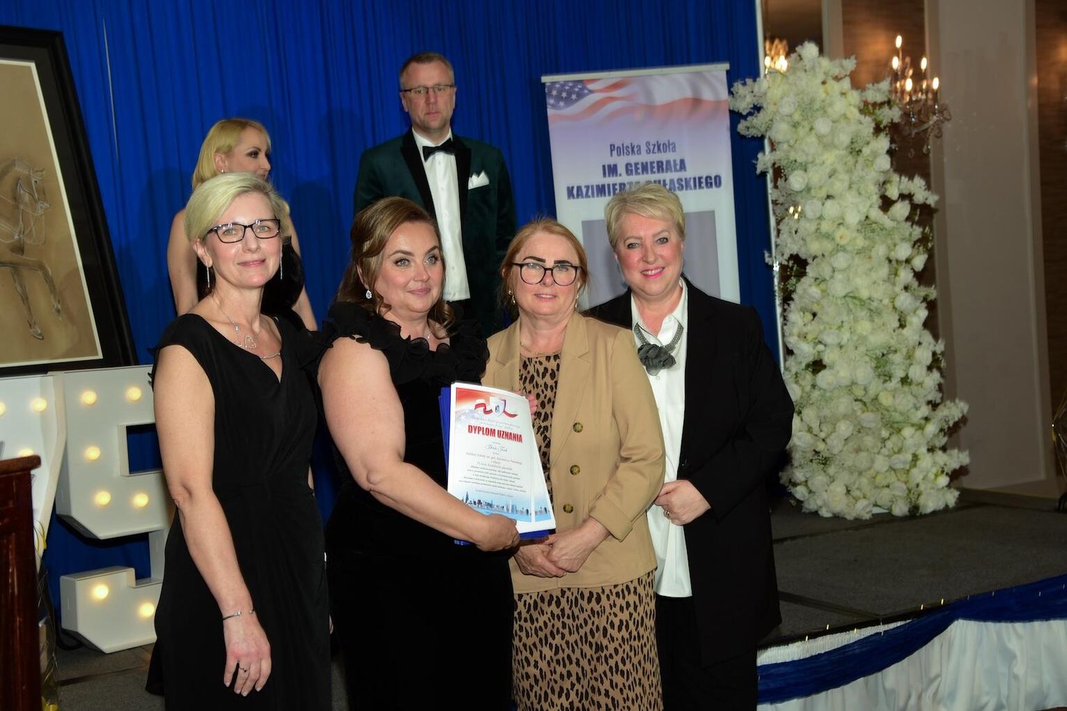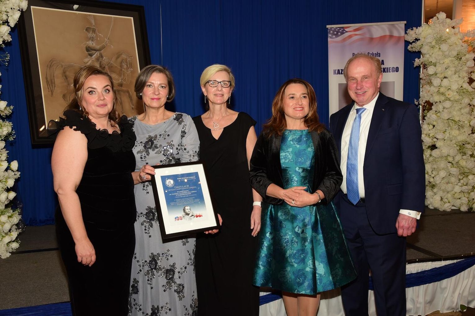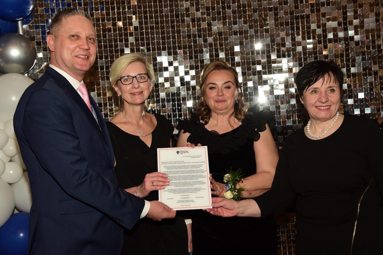 Obecny na bankiecie Aron Gonzalez, przedstawiciel biura senatora stanowego Roberta Martwicka, przekazał na ręce gospodyń szkoły okolicznościową proklamację, jako wyraz uznania dla wieloletniej działalności placówki pedagogicznej w promowaniu polskości, języka i kultury kraju pochodzenia. Do gratulacji dołączyła burmistrz miasteczka Harwood Heights Arlene Jezierny oraz Marek Adamczyk, koordynator Przystanku Historia Instytutu Pamięci Narodowej w Chicago, który przekazał list gratulacyjny.