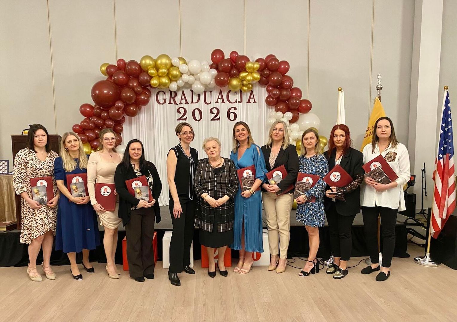 Dyplomy uznania i nagrody wręczyła: Nicole Trybala, laureatce pierwszego miejsca w konkursie literackim „Dziennika Związkowego” – „Rok 2025 w 365 słowach”, Sarze Synowiec zdobywczyni szkolnego tytułu „Mistrz Ortografii” oraz Georgowi Synowiec za zajęcie trzeciego miejsca w konkursie literackim na temat generała Kazimierza Pułaskiego zorganizowanym przez Kongres Polonii Amerykańskiej wydziału na stan Illinois.