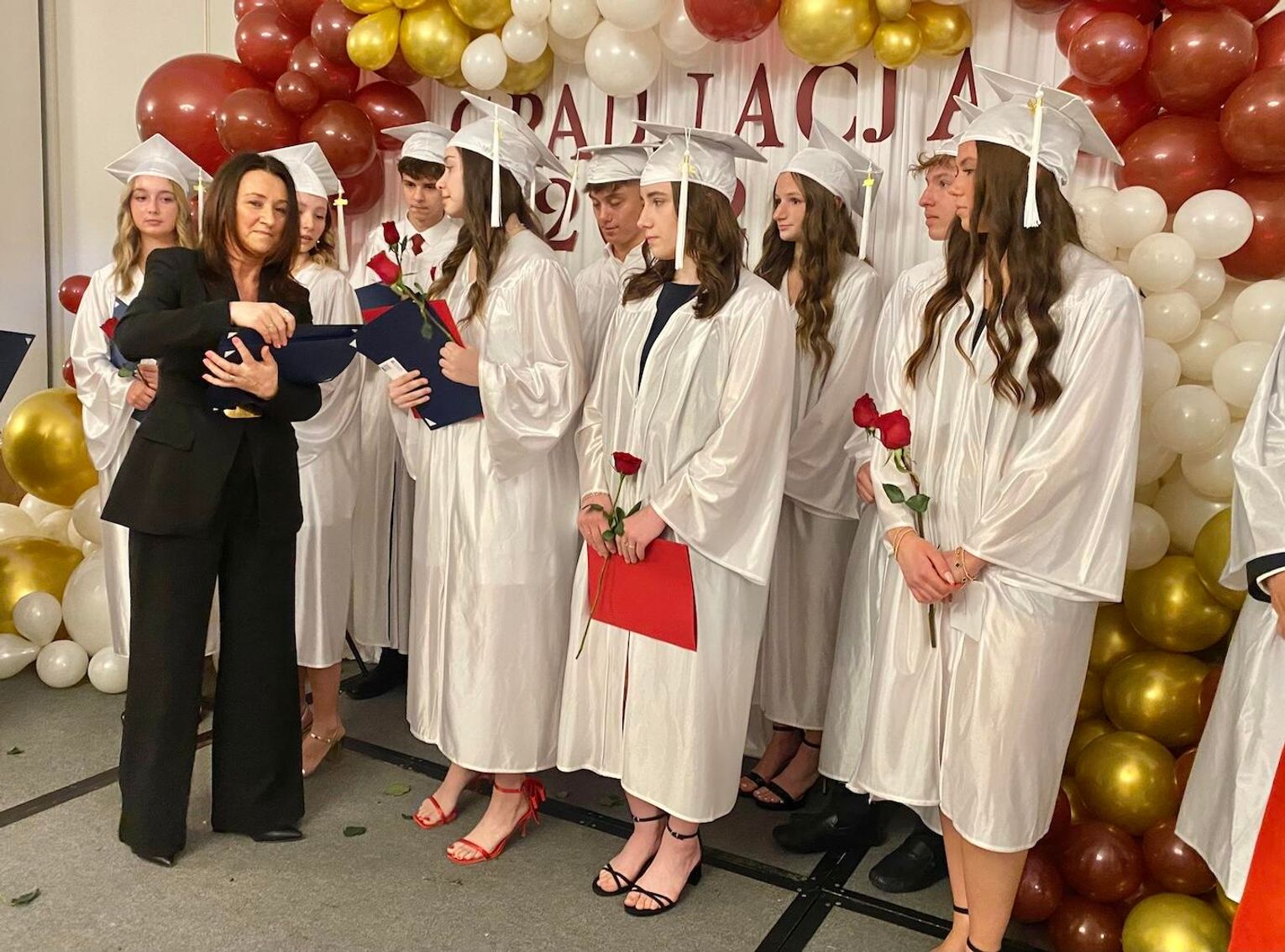 „Dziękuję, że mogliśmy razem odkrywać, w jaki sposób człowiek od zawsze szukał szczęścia, na nowo zadawać pytania o to, co w życiu jest naprawdę ważne, i dochodzić do tego, że najistotniejsze jest pozostać wiernym samemu sobie. Na naszych lekcjach chciałam Wam pokazać, że w życiu jest zawsze więcej niż jedna droga, że można szukać, próbować i myśleć samodzielnie, a literatura służyła wieloma przykładami.(…) To była dla mnie ogromna radość i zaszczyt towarzyszyć Wam w tej podróży poznawania korzeni, polskości ale i siebie samego. (…) Widzę w Was przyszłość. (…) Niech każdy z Was idzie dalej swoją drogą z odwagą, ciekawością i wiarą w siebie. Świat czeka na Wasze pomysły, Wasze serce i Wasze światło” – w liście do uczniów napisała wychowawczyni Beata Laska.