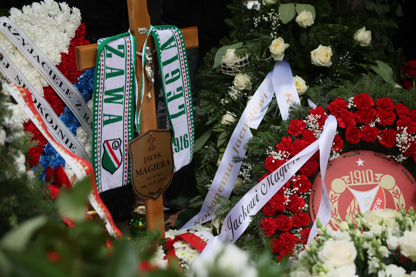 Przed mszą na trumnie położono szaliki reprezentacji Polski oraz klubów, z którymi Magiera był najdłużej związany. Pamiętali o nim także fani innych drużyn, o czym świadczył m.in. duży wieniec w niebieskich barwach Ruchu Chorzów.