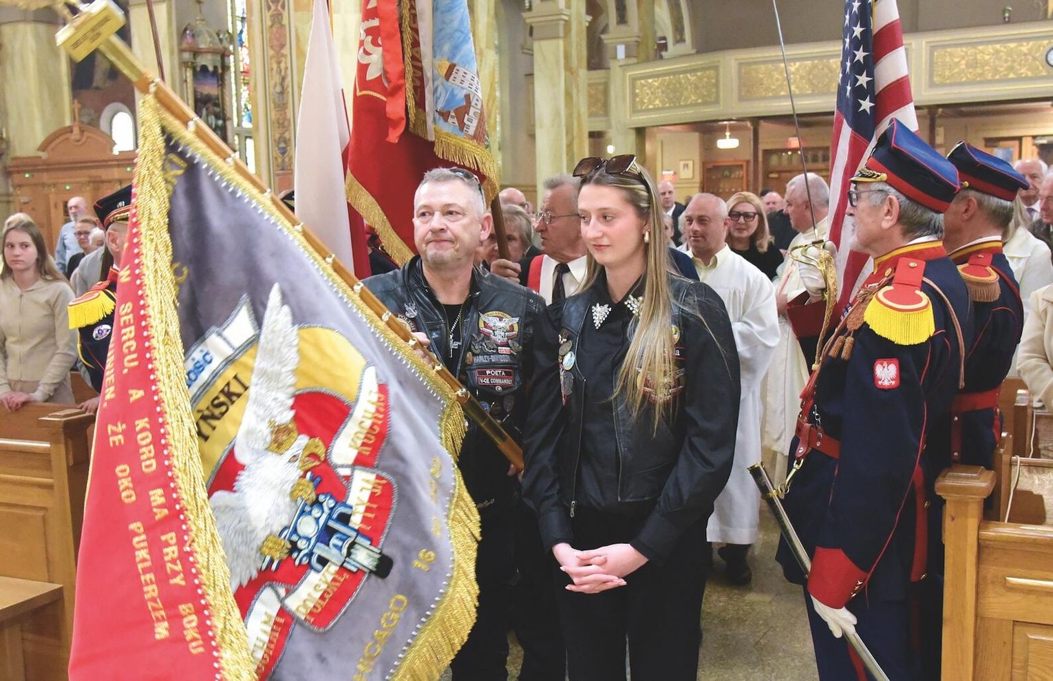 Wartę honorową przy ołtarzu trzymały poczty sztandarowe szkół i organizacji polonijnych. W ławach dla wiernych zasiedli między innymi: wicekonsul Agata Grochowska, prezes wydziału stanowego Kongresu Polonii Amerykańskiej Jolanta Grocholska oraz członkowie ZKP i Komitetu Opieki z prezes Łucją Mirowska-Kopeć oraz honorowym prezesem ZKP Janem Kopciem na czele.