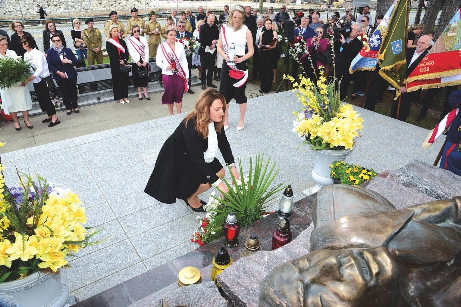 Punktem kulminacyjnym uroczystości było złożenie kwiatów i zapalenie zniczy. W imieniu władz RP kwiaty złożyła wicekonsul Agata Grochowska. Związek Klubów Polskich reprezentowała prezes Łucja Mirowska-Kopeć oraz honorowy prezes Jan Kopeć. Kolejne kwiaty i znicze złożyli i zapalili reprezentanci: Polsko-Słowiańskiej Federalnej Unii Kredytowej, wydziału stanowego Kongresu Polonii Amerykańskiej, córka śp. Wojciecha Seweryna Anna Wójtowicz, Zrzeszenie Literatów Polskich im. św. Jana Pawła II, Klub Pojawie, Szkoła im. św. Brata Alberta Chmielewskiego, Przystanek Historia IPN w Chicago, Stowarzyszenie Rajd Katyński „Pamięć i tożsamość”, Wataha Raiders, Bractwo Kurkowe, Pomocnicza Służba Kobiet „Pestki”, 3 Dywizja Strzelców Karpackich w Chicago, Związek Harcerstwa Polskiego, Zespół Pieśni i Tańca Wawel, Polonia For Poland i Klub Gazety Polskiej w Chicago oraz Klub Pilzno i Okolice.