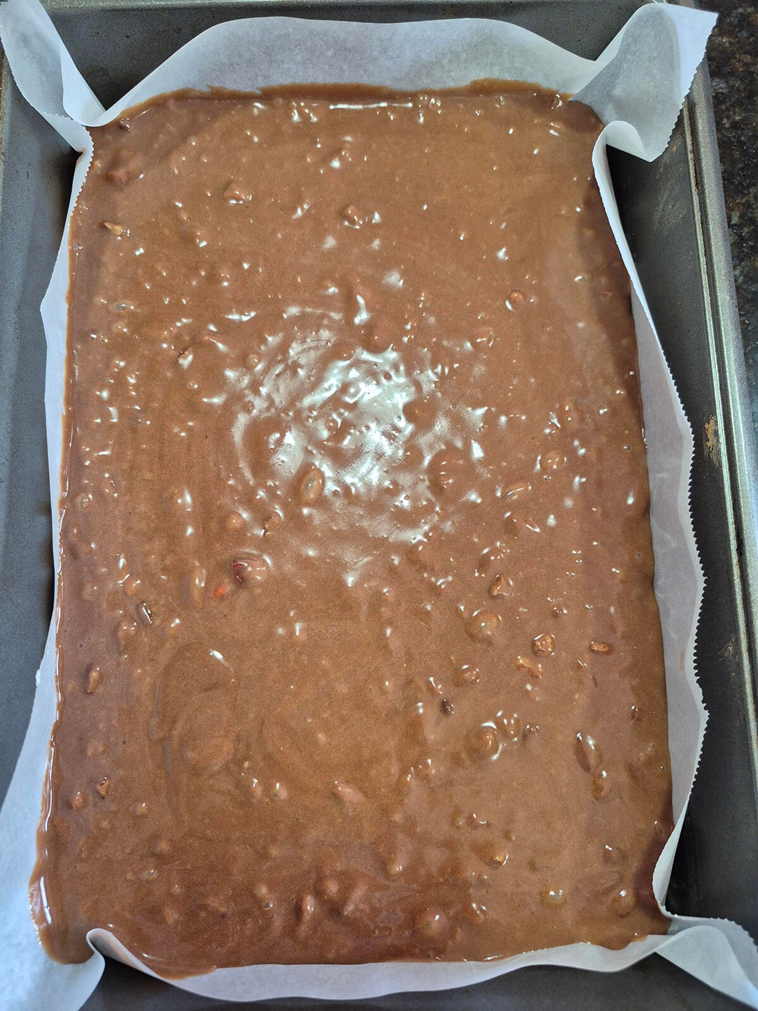 Nagrzej piekarnik do 350°F/175°C. Wyłóż formę ok. 20×20 cm papierem do pieczenia.